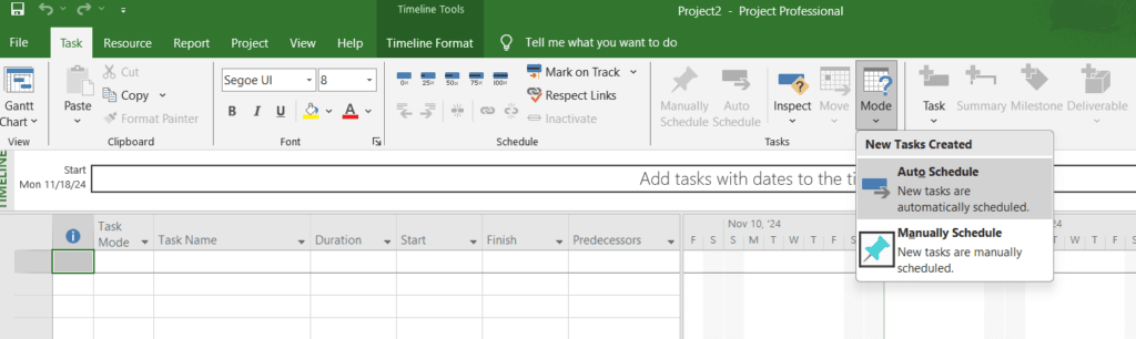 - Task > Task Mode > Auto Schedule.